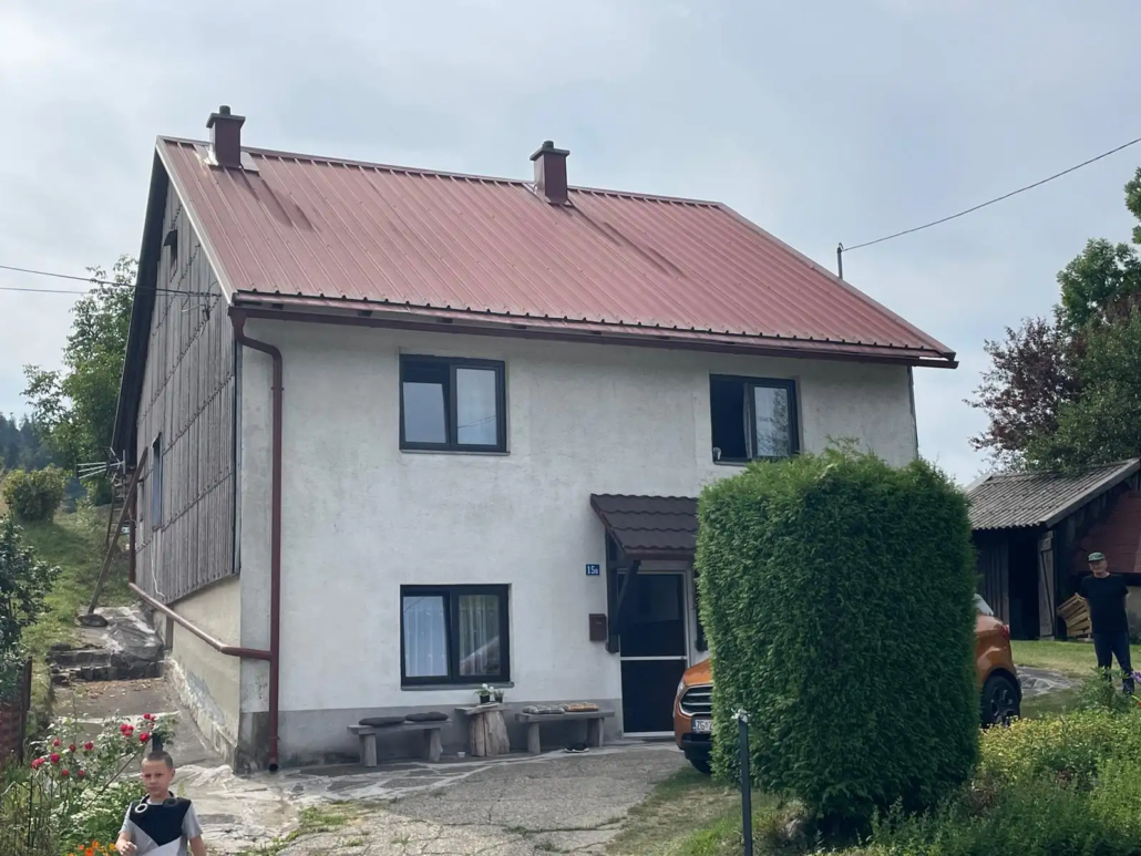 Pokriveno sve s crijep pločom i ugrađen novi žljeb i vertikala za odvodnju oborniske vode. Završen projekt u roku 2 dana.
